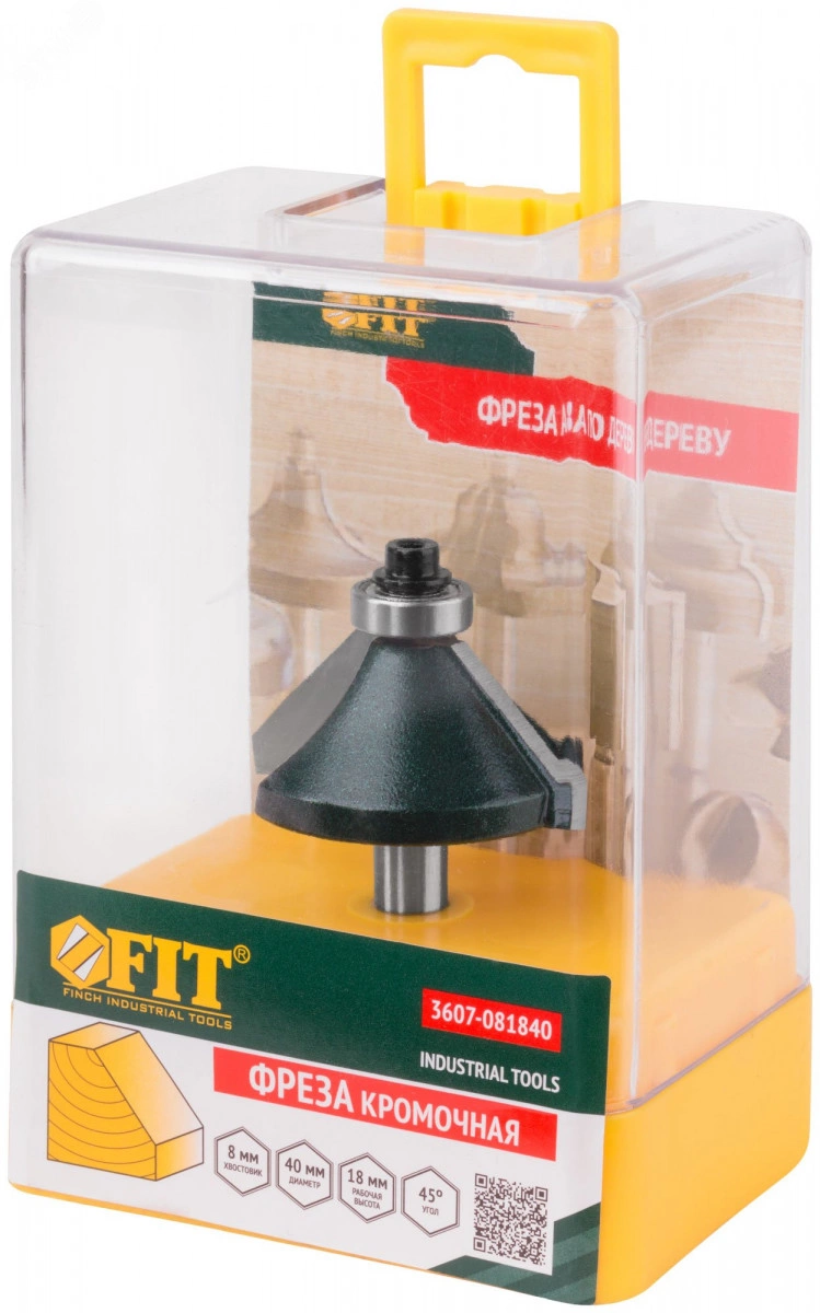 Фреза кромочная конусная с нижним подшипником FIT IT применяется в работах по дереву, предназначена для фрезерования кромок. Угол при вершине 45 градусов. Подшипник позволяет обрабатывать криволинейные кромки без дополнительных приспособлений. Возможна замена подшипника для расширения функционала фрезы или по причине износа. Фреза выполнена из высококачественного материала с использованием твердых сплавов, что обеспечивает ее долговечность и точность выполняемых работ. В производстве фрез FIT использована термообработанная инструментальная сталь. Режущие пластины выполнены из композитного карбид-вольфрамового сплава ВК6 с добавлением 6 процентов кобальта в состав. Напайка режущих вставок к корпусу осуществляется с помощью меди.