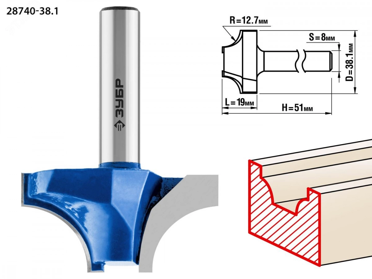 Фреза пазовая фасонная №1 38.1x19мм, радиус 12.7мм
