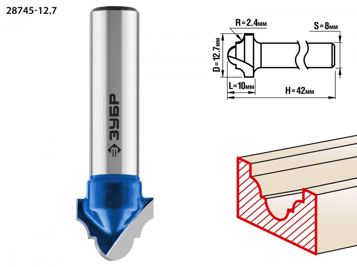 Фреза пазовая фасонная №6 12.7x10мм, радиус 2,4мм