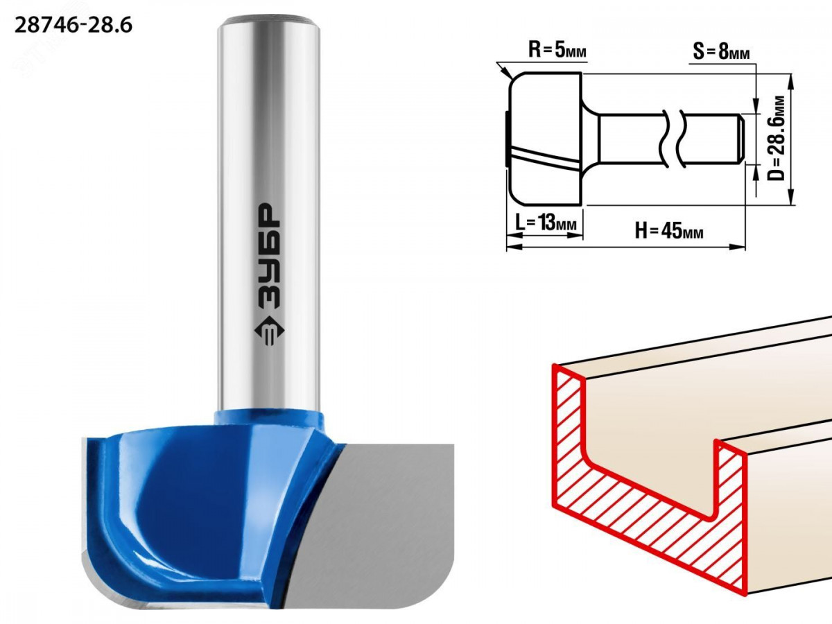 Фреза пазовая фасонная №7 28,6x13мм, радиус 5мм