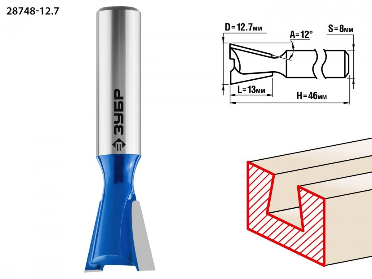 Фреза пазовая фасонная ''Ласточкин Хвост'' 12.7x13мм, угол 12град.