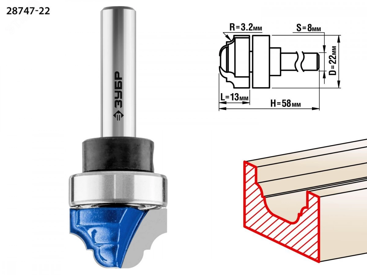 Фреза пазовая фасонная с верхним подшипником 22x13мм, радиус 3,2мм