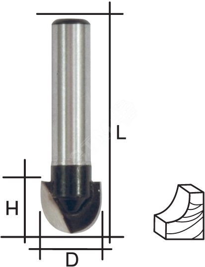 Фреза пазовая галтельная, DxHxL = 8 х 6 х 44 мм