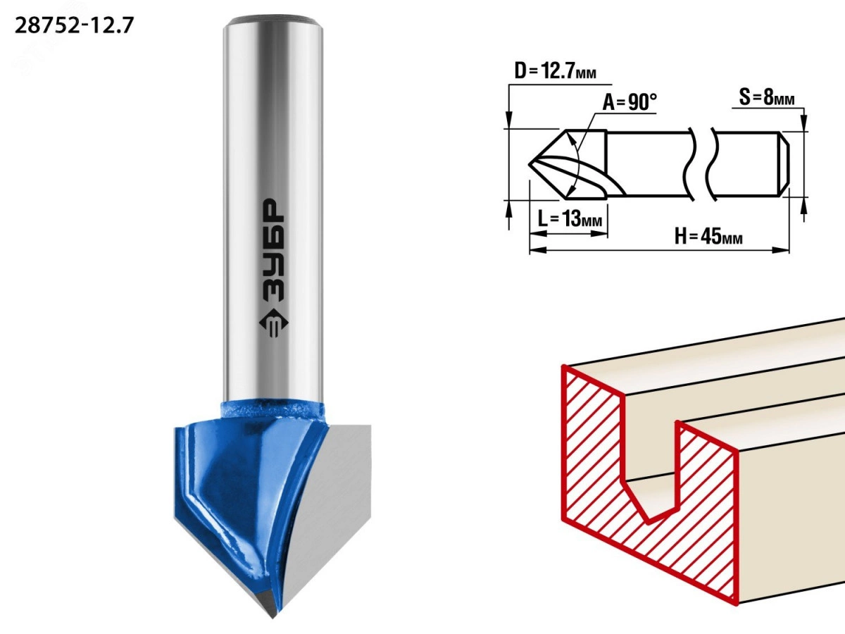 Фреза пазовая галтельная V-образная 12.7x13мм, угол 90град.мм
