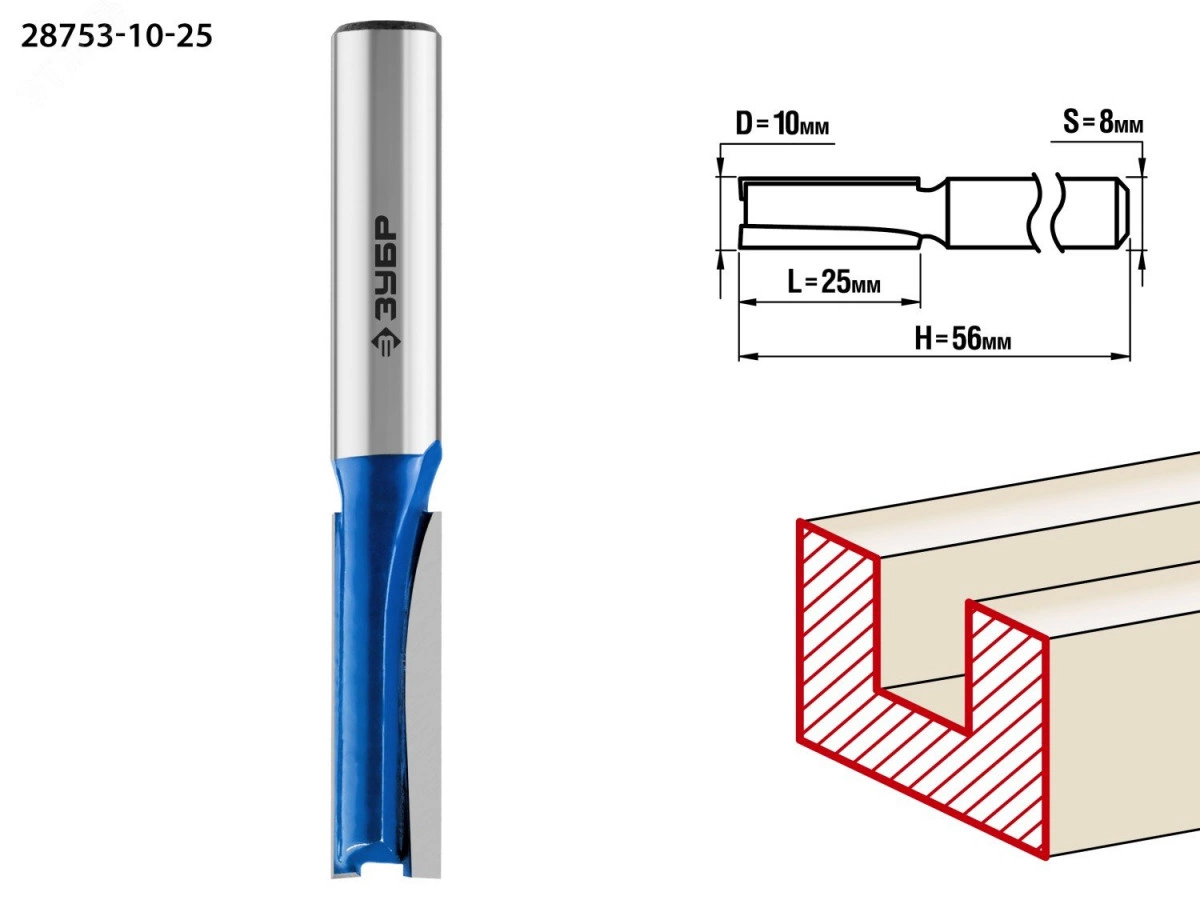 Фреза пазовая прямая 10x25мм, хвостовик 8мм