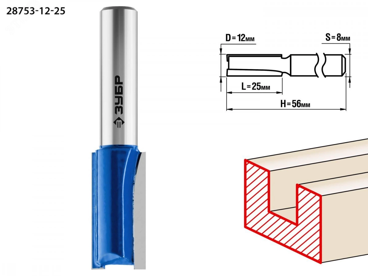 Фреза пазовая прямая 12x25мм, хвостовик 8мм