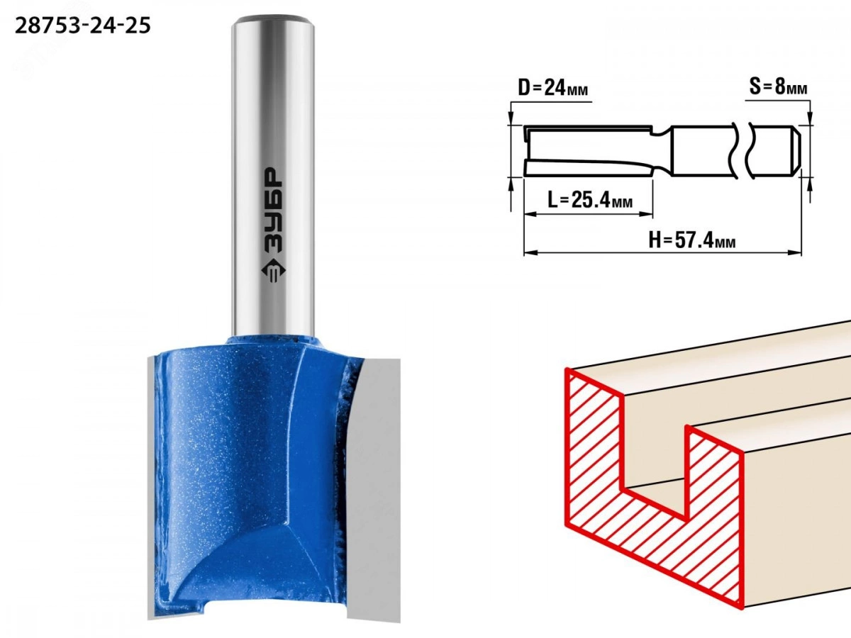 Фреза пазовая прямая 24x25мм, хвостовик 8мм
