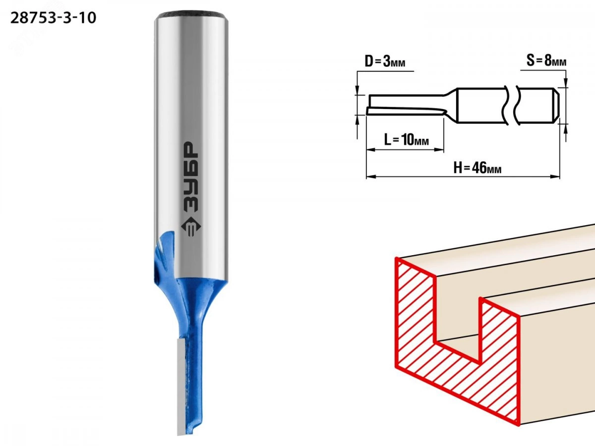 Фреза пазовая прямая 3x10мм, хвостовик 8мм
