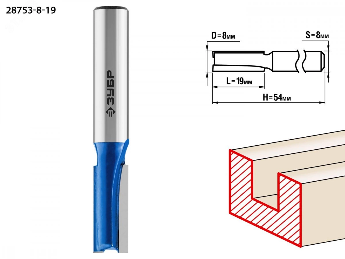 Фреза пазовая прямая 8x19мм, хвостовик 8мм
