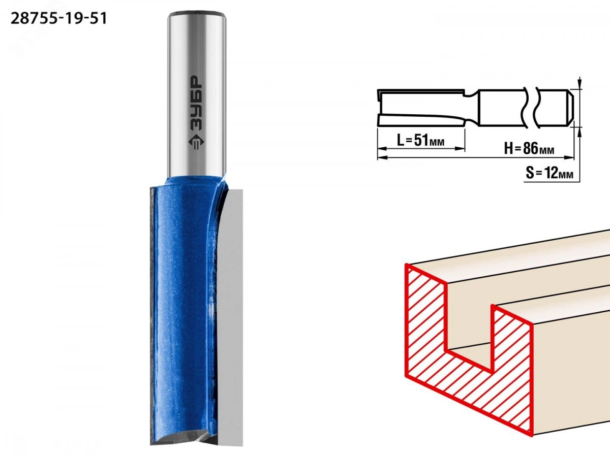 Фреза пазовая прямая с нижними подрезателями 19x51мм, хвостовик 12мм