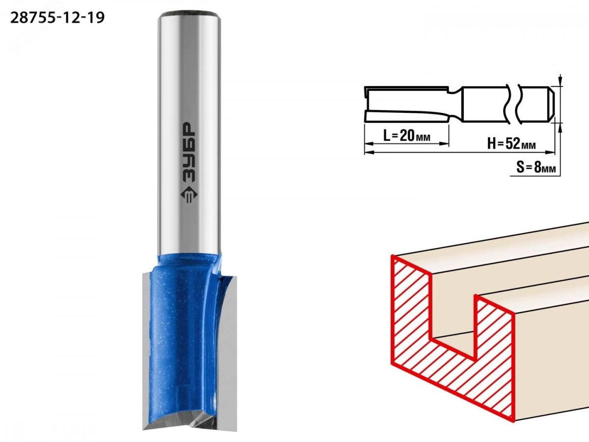 Фреза пазовая прямая с нижними подрезателями 12x19мм, хвостовик 8мм