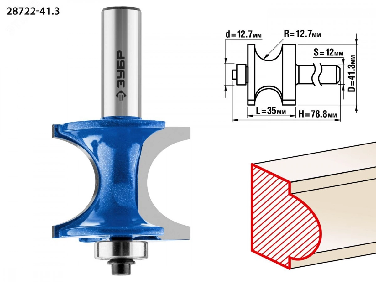 Фреза полустержневая с подшипником 41,3x35мм, радиус 12.7мм