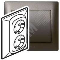 Полное описание: Galea Life Розетка с заземлением 2х2К+З со шторками темная бронза