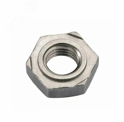 Гайка DIN 929 приварная шестигранная с внутренней резьбой и с тремя выступами на нижней грани либо приварным кольцом.