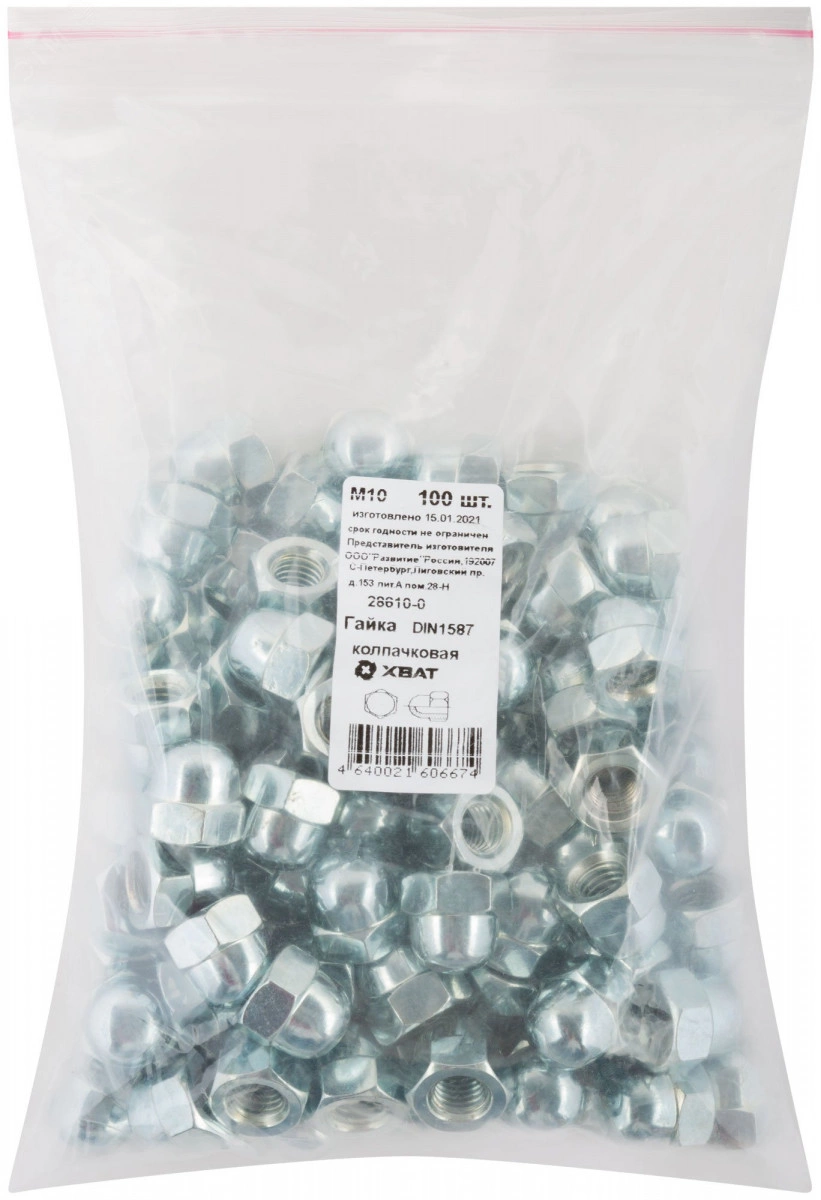 Гайка DIN1587 М10 колпачковая оцинкованная (100 шт)