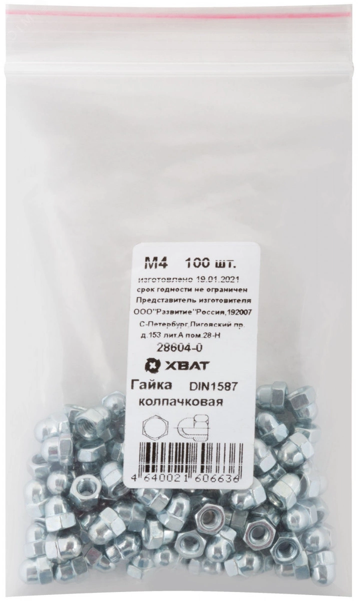 Гайка DIN1587 М4 колпачковая оцинкованная (100 шт)