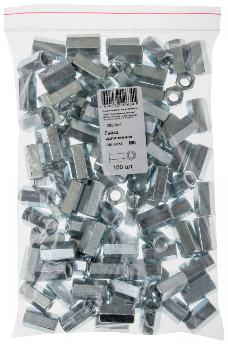 Гайка DIN6334 М8 удлиненная соединительная оцинкованная (100 шт)