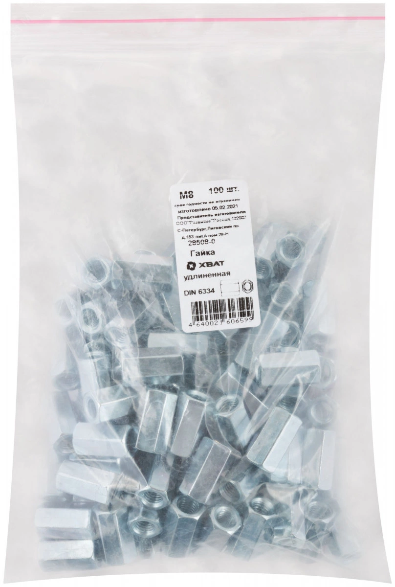 Гайка DIN6334 М10 удлиненная соединительная оцинкованная (2 шт)