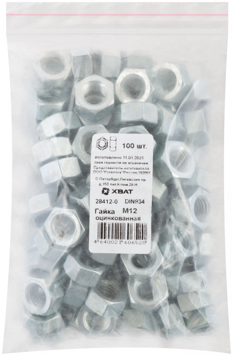 Гайка DIN934 М12 шестигранная оцинкованная (100 шт)