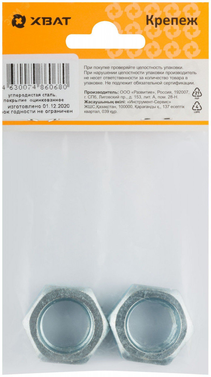 Гайка DIN934 М20 шестигранная оцинкованная (2 шт)