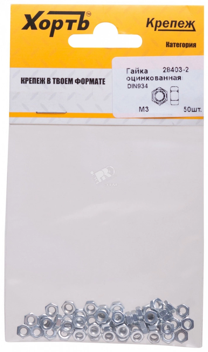 Гайка DIN934 М3 шестигранная оцинкованная (50 шт)