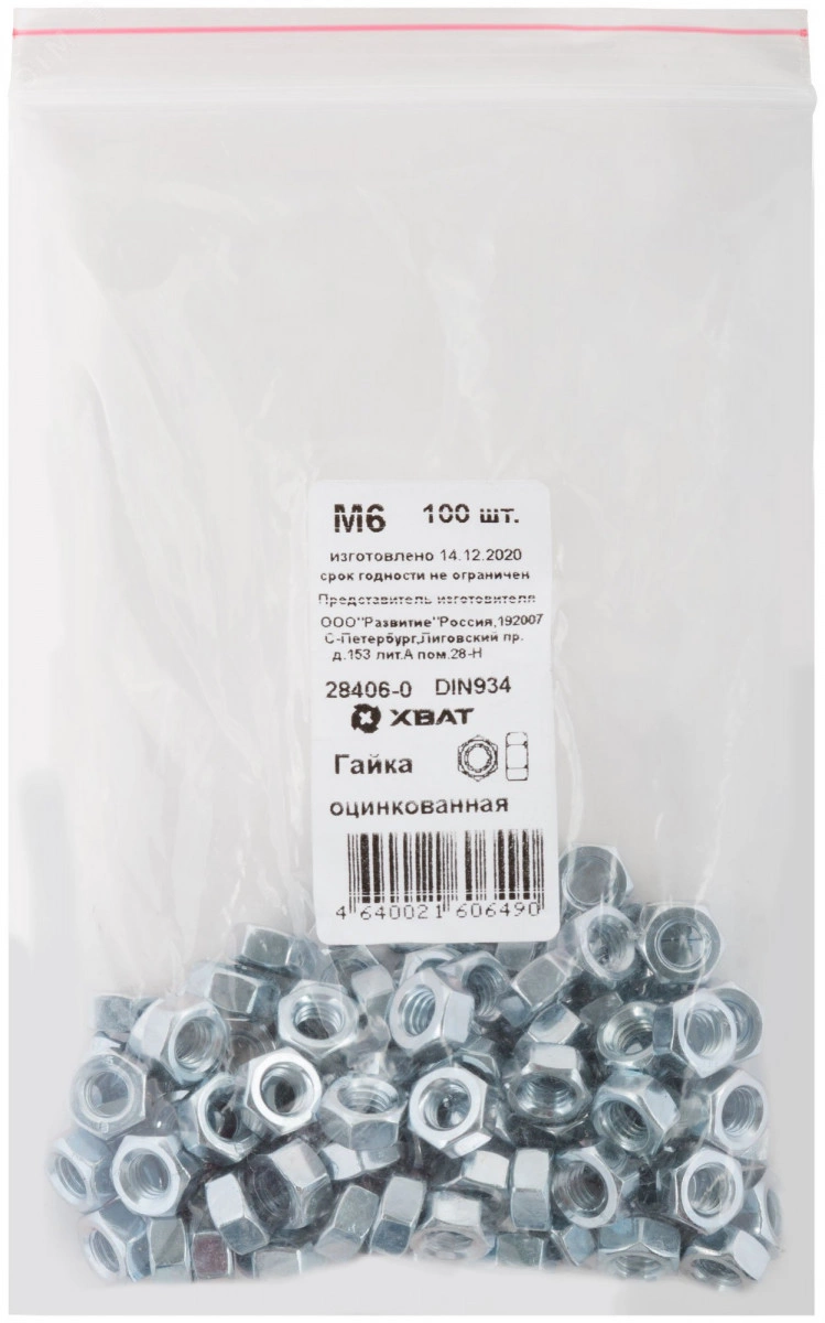 Гайка DIN934 М6 шестигранная оцинкованная (100 шт)