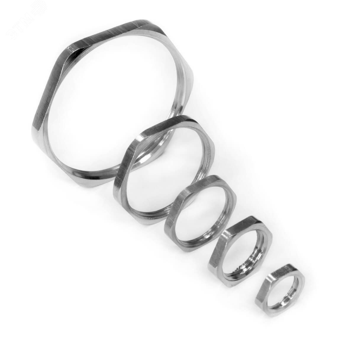 Гайки плоские ГП2Н-М из нержавеющей стали предназначены для надёжного закрепления и фиксации закрепляемой муфты, трубы, фитингов или устройств вводимых в электротехнические оболочки (ящики, щиты управления, коробки). Изготавливаются с резьбой М25х1,5.