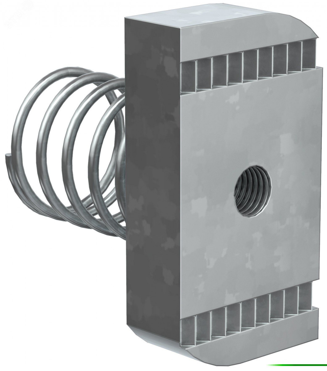 Гайка канальная с пружиной предназначена для крепления элементов STRUT-системы между собой, а также кабельных лотков к STRUT-консолям.Используется с профилем сечения 41х21.