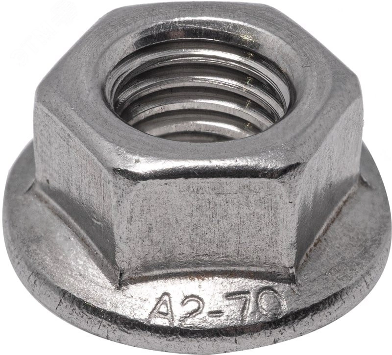 DIN 6923 Гайка шестигранная с фланцем нержавеющая - метрический крепеж для создания прочных резьбовых соединений без необходимости использования шайб. Фланец с насечками специальной формы заменяет собой одновременно и плоские шайбы и шайбы-гроверы.