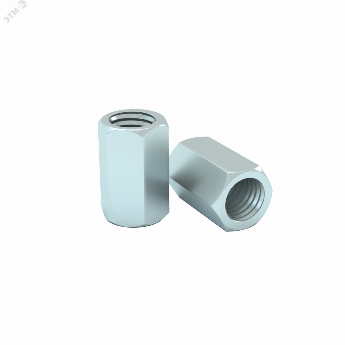 Для соединения и наращивания металлических резьбовых крепежей используется соединительная гайка. Элемент представляет собой муфту с внутренней одинаковой резьбой по всей длине изделия. Благодаря такой конструктивной особенности, метизы не выкручиваются при вибрации или нагрузке на изгиб. Крепёж предназначено для применения в местах предпочтительно с сухим климатом, внутри помещений и в слабоагрессивных средах, в соответствии с ГОСТ15150-69. Удлиненная форма гайки обеспечивает легкий и быстрый монтаж. Захват гайки выполняется с любой стороны.