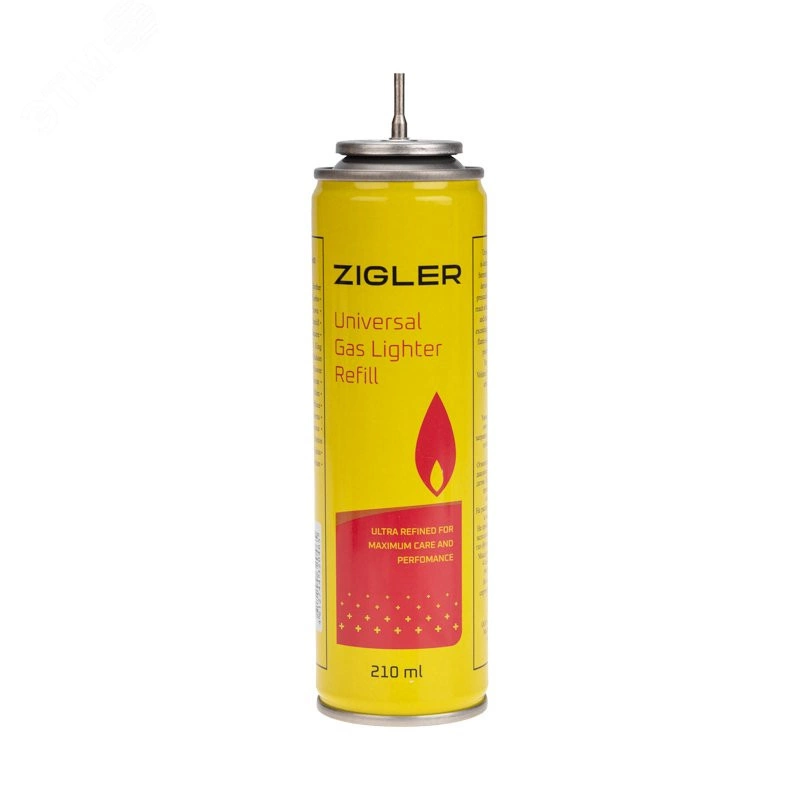Газ для зажигалок в металлическом баллоне, 210мл. (80 г) с 5 переходниками предназначен для заполнения газовых зажигалок, а также других различных газовых приборов - ламп, обогревателей, светильников и т. п. Такой популярный способ заправки зажигалок является самым экономичным. Этот газ изготовлен по новейшей технологии, он прошел несколько этапов очистки. Газ легко воспламенятся и почти не имеет запаха. В защитном колпачке установлены 5 различных переходников, которые позволят заправлять многие газовые приборы. Газ в баллоне не содержит примесей и несгораемых частиц, что обеспечит беспрепятственное прохождение газа. Баллон необходимо использовать в соответствии с инструкцией по эксплуатации газовых приборов при температуре -10...+40 градусов Цельсия.