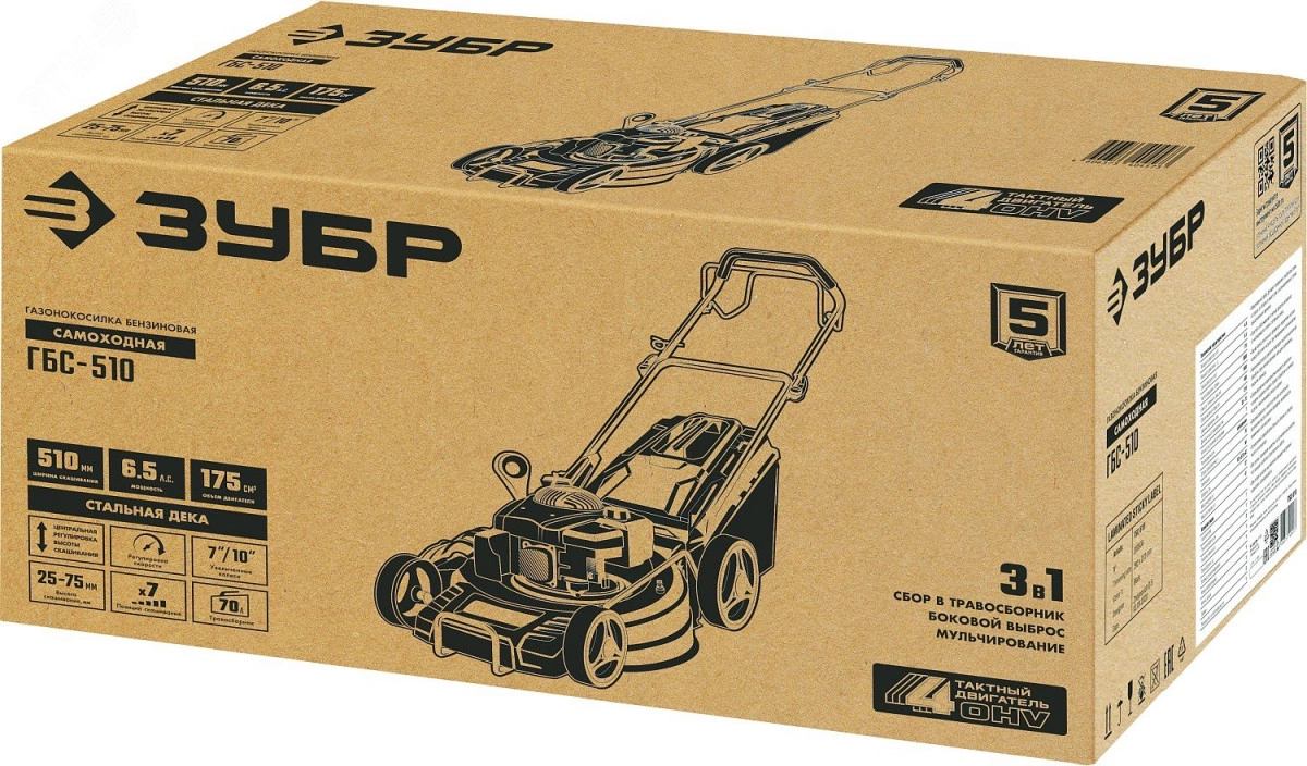 Газонокосилка самоходная бензиновая, 510 мм 6.5 л.с.