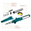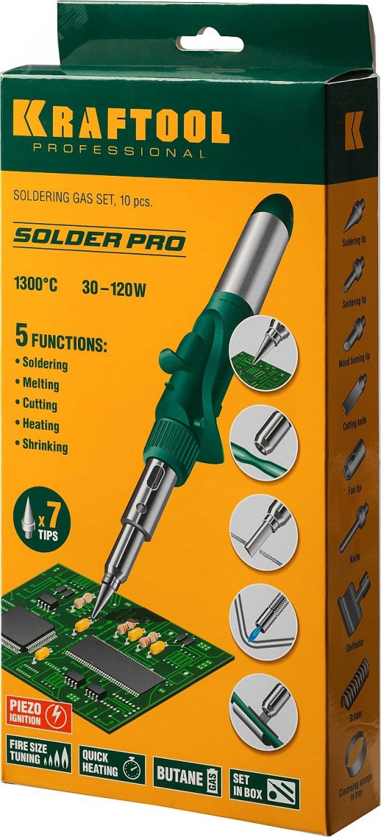 Беспроводной паяльник поставляется с 7-ю сменными насадками. Он обладает возможностью выбора температурного режима, что позволяет максимально соответствовать требованиям любой работы. Этот легкий в обращении инструмент, идеально подходит для пайки, выжигания, резки и многих других работ. •Возможность выбора температурного режима - установите температуру, подходящую для ваших целей •Пьезоподжиг позволяет мгновенно включить прибор, •Точность - возможность выполнения точных и сложных работ •Очень короткое время нагрева и быстрая перезарядка - всегда готов к работе •Многофункциональность - один инструмент. множество возможностей. •Работает на жидком газе бутане - готов к работе всегда и везде Газовая микрогорелка используется при работах с ювелирными изделиями и особо мелкими деталями, где очень важна точность и легкость движений специалиста. Выполнена в прочном алюминиевом корпусе.