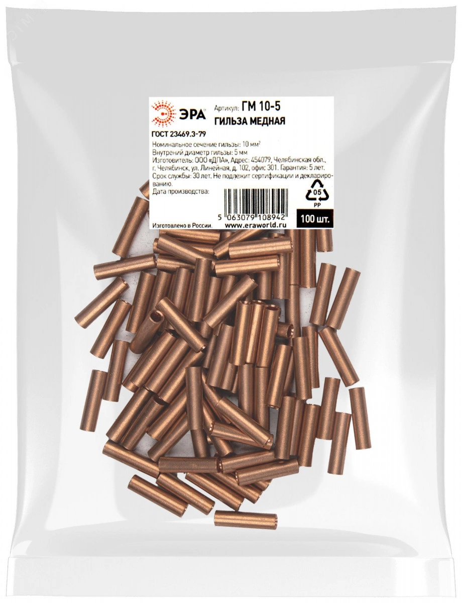 Гильза ЭРА ГМ 10-5 медная ГОСТ 23469.3-79