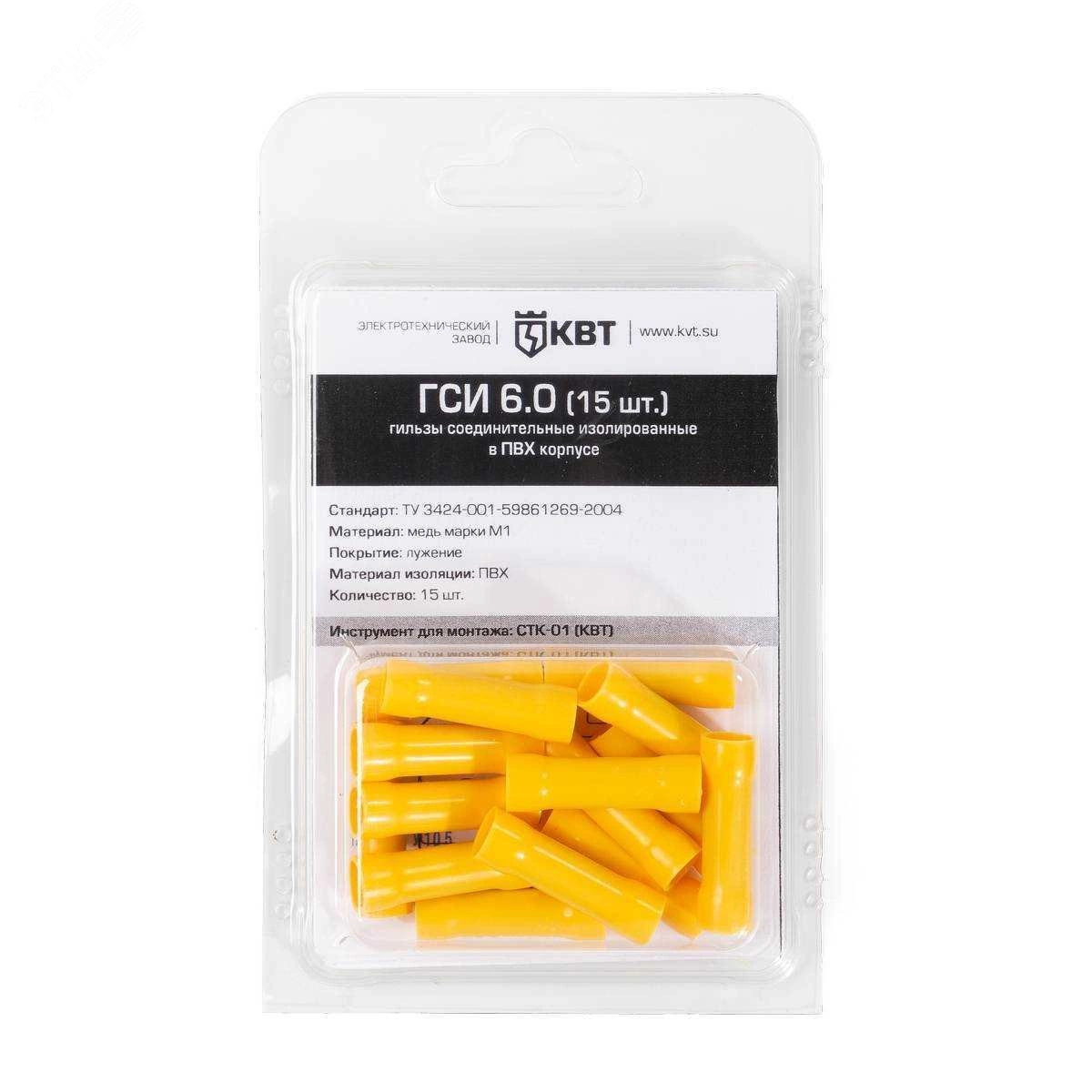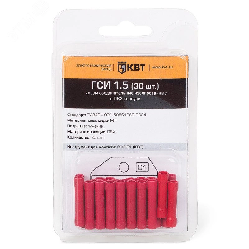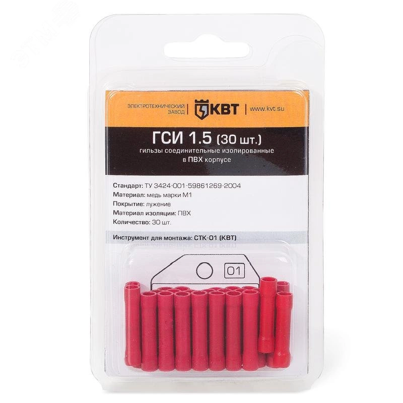 Предназначены для соединения встык медных проводов методом опрессовки. Материал изоляции - гильзы ГСИ – самозатухающий ПВХ. гильзы ГСИ-Т и ПК-Т – термоусадочная трубка 3 -1. Материал гильзы - медь М1 / электролитическое лужение. Стопорная высечка, расположенная по центру гильзы, определяет глубину захода провода в соединитель.