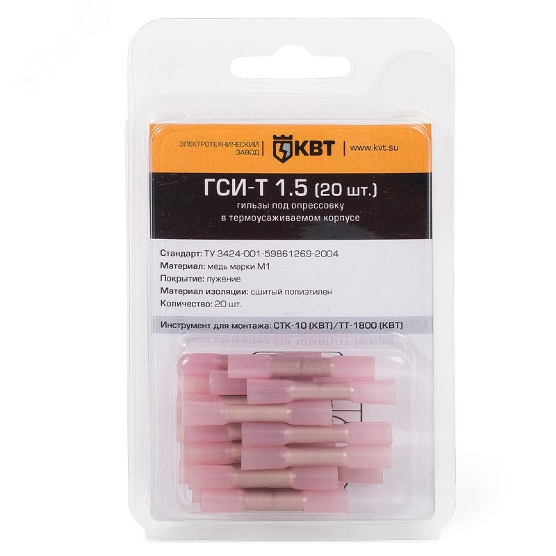 Предназначены для соединения встык медных проводов методом опрессовки. Материал изоляции - гильзы ГСИ – самозатухающий ПВХ. гильзы ГСИ-Т и ПК-Т – термоусадочная трубка 3 -1. Материал гильзы - медь М1 / электролитическое лужение. Стопорная высечка, расположенная по центру гильзы, определяет глубину захода провода в соединитель.