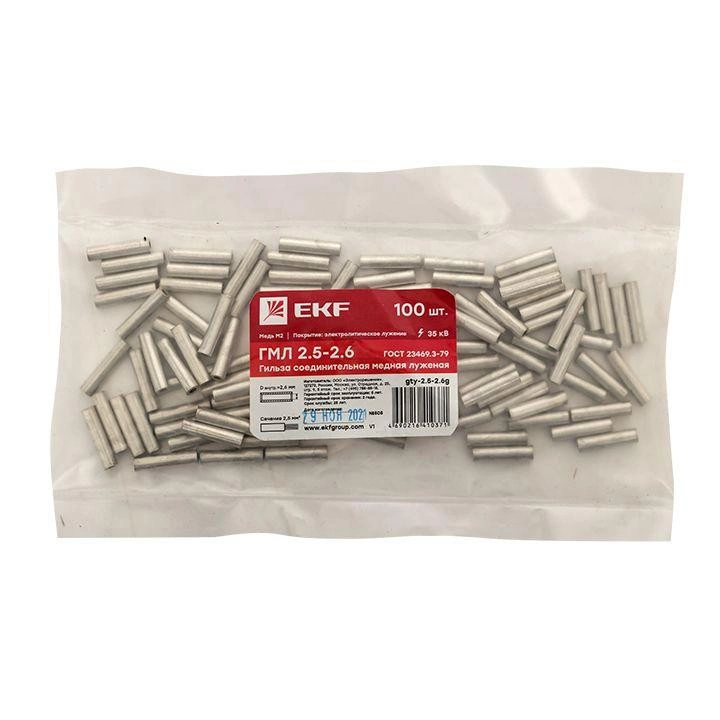Полное описание: Гильза соединительная медная луженая ГМЛ 2.5-2.6 ГОСТ PROxima EKF gty-2.5-2.6g