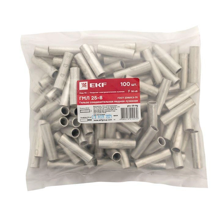 Полное описание: Гильза соединительная медная луженая ГМЛ 25-8 ГОСТ PROxima EKF gty-25-8g
