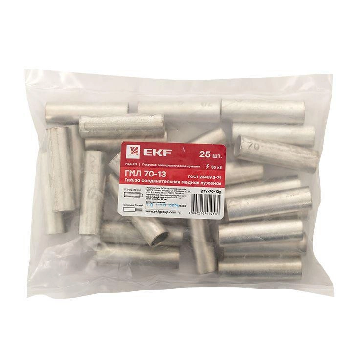 Полное описание: Гильза соединительная медная луженая ГМЛ 70-13 ГОСТ PROxima EKF gty-70-13g