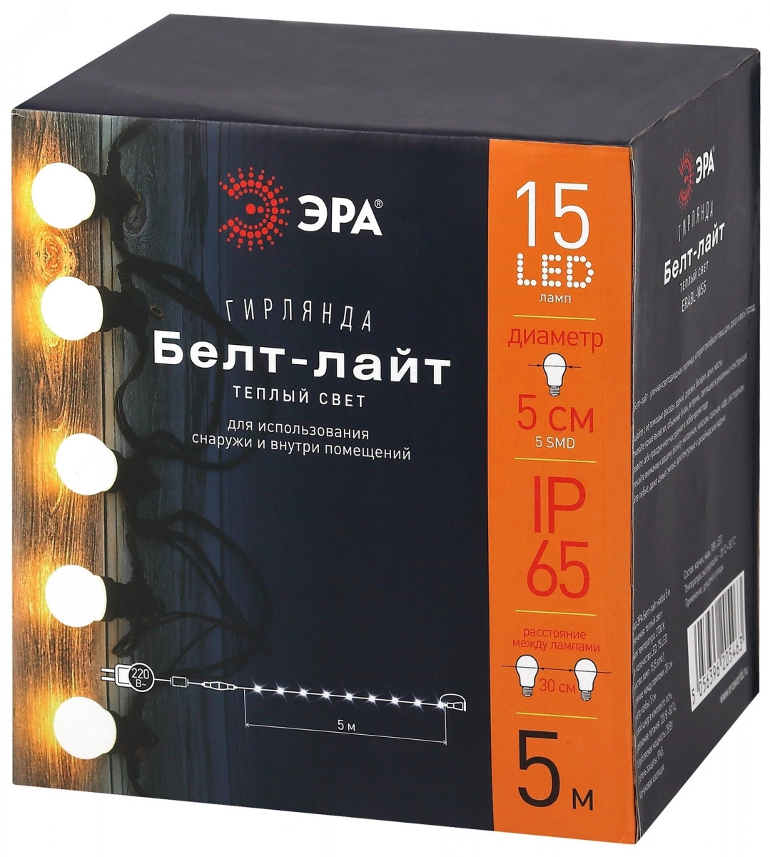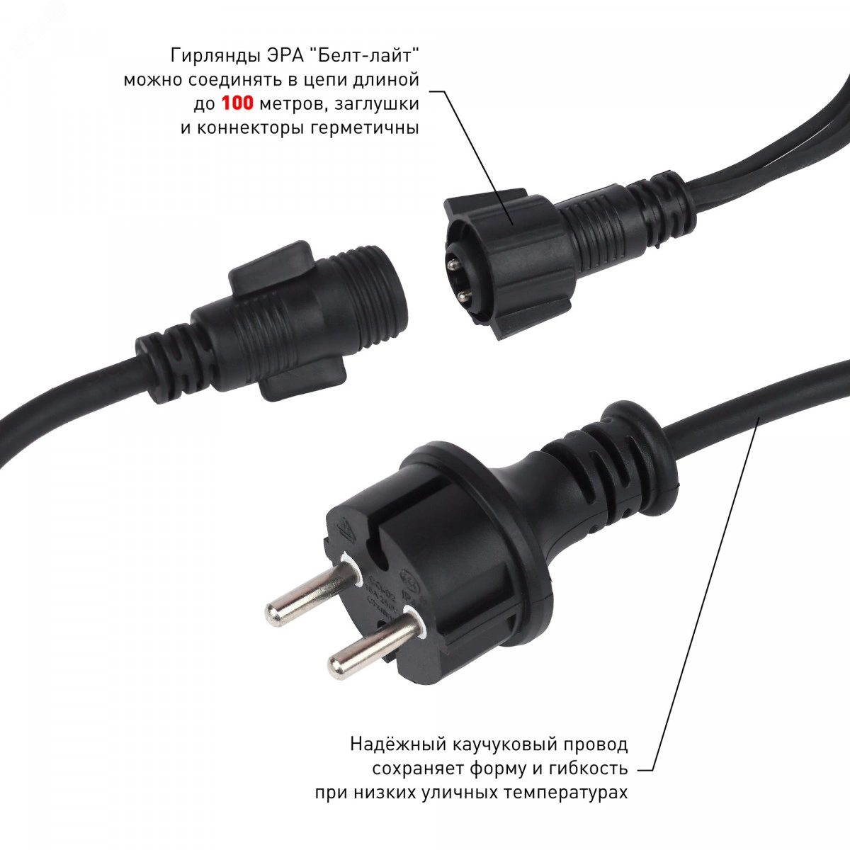Универсальная декоративная гирлянда, круглые лампы с тёплым белым светом будут отлично смотреться и в снежную зиму, и в золотую осень, и на фоне зелёной листвы. Является современным высокотехнологичным аналогом традиционных гирлянд-шариков. Подходит для применения внутри и снаружи помещений. Колбы не из хрупкого стекла, а из устойчивого к механическим воздействиям и низким температурам пластика. Лёгкие и прочные плафоны не разобьются при транспортировке, использовании и хранении. Надёжный каучуковый провод сохраняет форму и гибкость при низких уличных температурах. Гирлянды ЭРА `Белт-лайт` можно соединять в цепи длиной до 100 метров, заглушки и коннекторы герметичны. В каждый набор входит комплект для подключения и соединения.