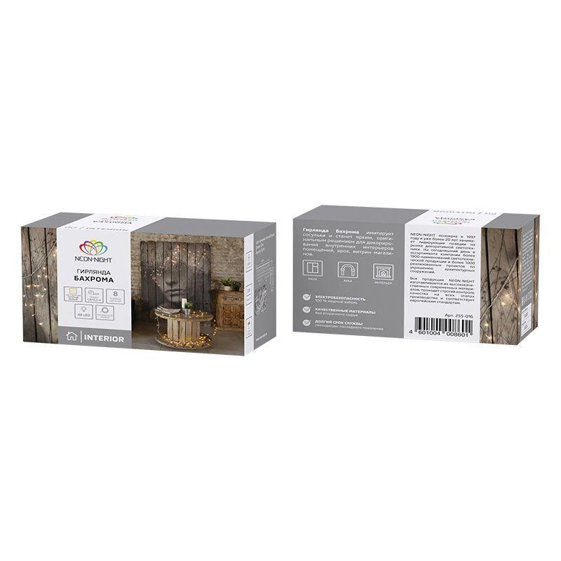 Полное описание: Гирлянда "Айсикл" (бахрома) 1.8х0.5м 48LED тепл. бел. 3Вт 230В IP20 провод прозр. Neon-Night 255-016