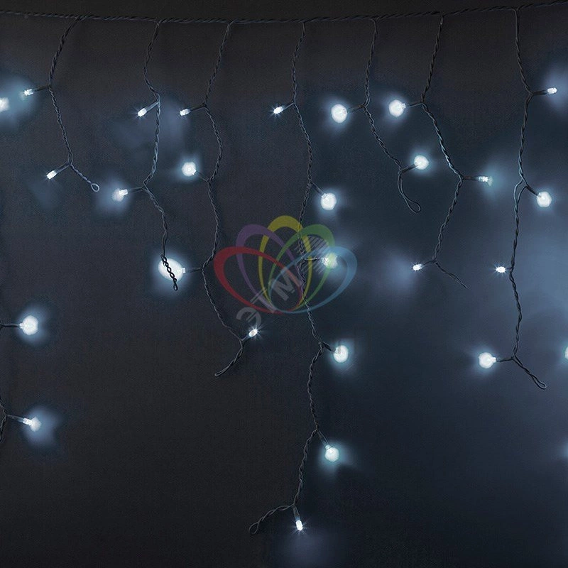 Гирлянда ''Бахрома'' (''Айсикл'') представляет собой гибкий горизонтальный шнур-шину, к которому через определенные промежутки крепятся вертикальные нити разной длины со светодиодами. Она имитирует сосульки и может послужить эффектным и оригинальным решением при декорировании карнизов домов, арок, фасадов зданий, витрин магазинов, а также стать элементов декора внутренних интерьеров помещений. При длине 5,6 метра гибкая направляющая имеет 48 вертикальных нити от 20 до 90 см. Ее особенностью является наличие мерцающих светодиодов Белого цвета, которые привлекают внимание и значительно преображают украшенную поверхность (мерцает каждый пятый светодиод). В гирлянде используется каучуковый провод, благодаря которому гирлянду отличает высокая надежность в условиях российского климата, даже в самых холодных регионах страны!