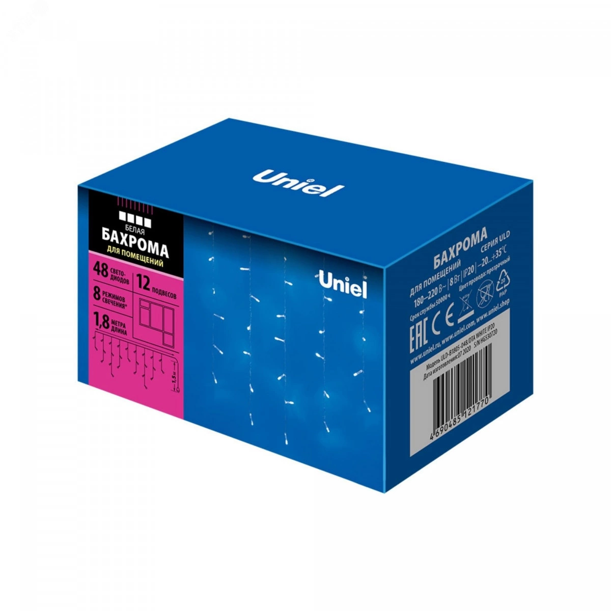 Гирлянда Бахрома светодиодная с контроллером 1,8 м 48 светодиодов ULD-B1805-048/DTA WHITE IP20 белый свет Провод прозрачный