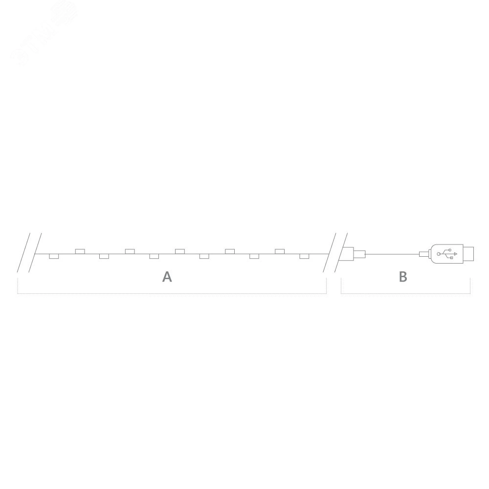 Линейная светодиодная гирлянда CL575 TM Feron Роса. Гирлянда снабжена USB-разъемом, работает от сети 230v через адаптер (нет в комплекте), а также может быть подключена к переносному аккумулятору или ноутбуку, что позволяет использовать ее даже без доступа к электросети.