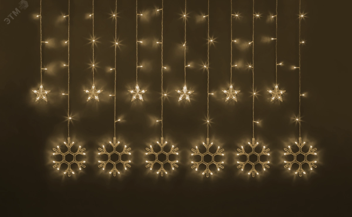 Гирлянда новогодняя светодиодная NGF-D032-01 бахрома звезды и снежинки WW 2.5х1 м IP20