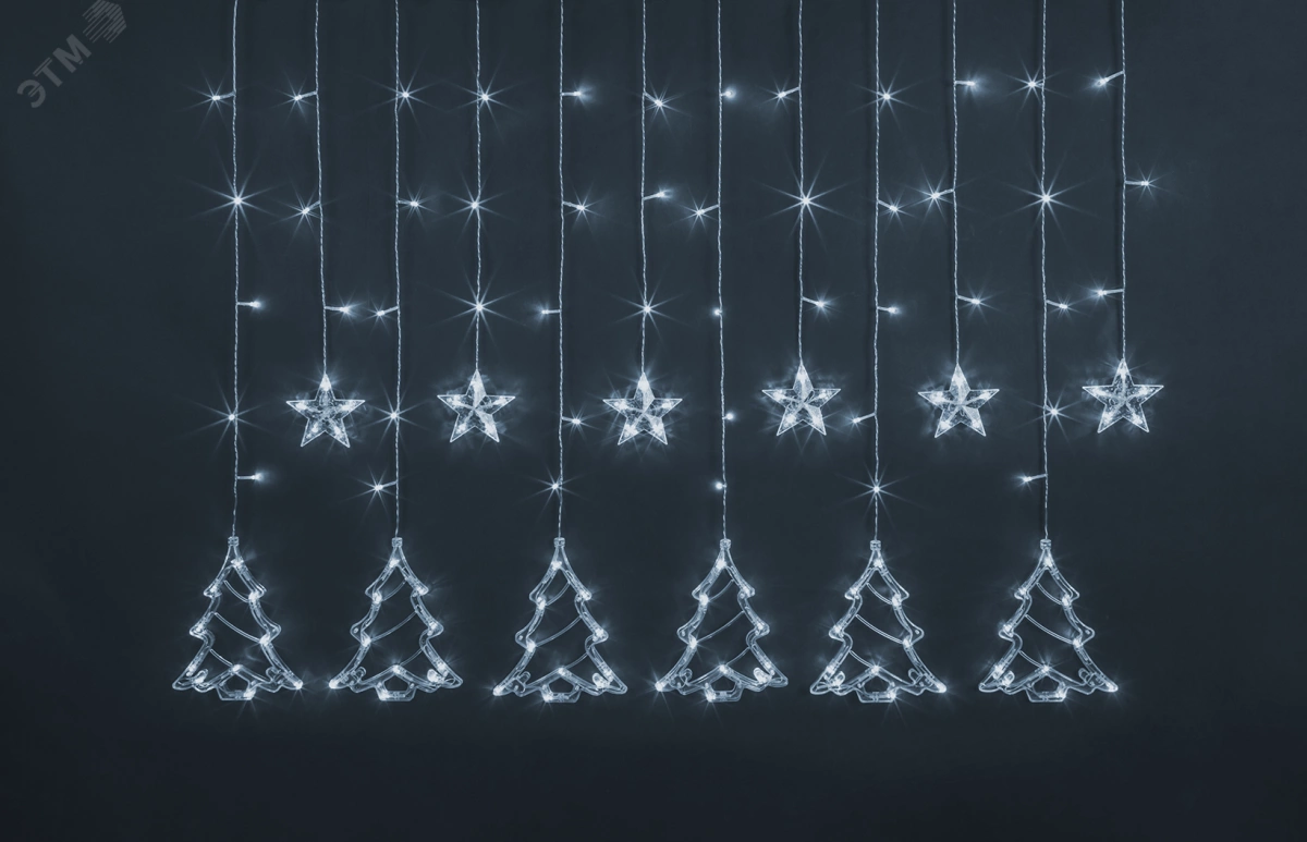 Гирлянда новогодняя светодиодная NGF-D033-02 бахрома звезды и елочки CW 2.5х1 м IP20