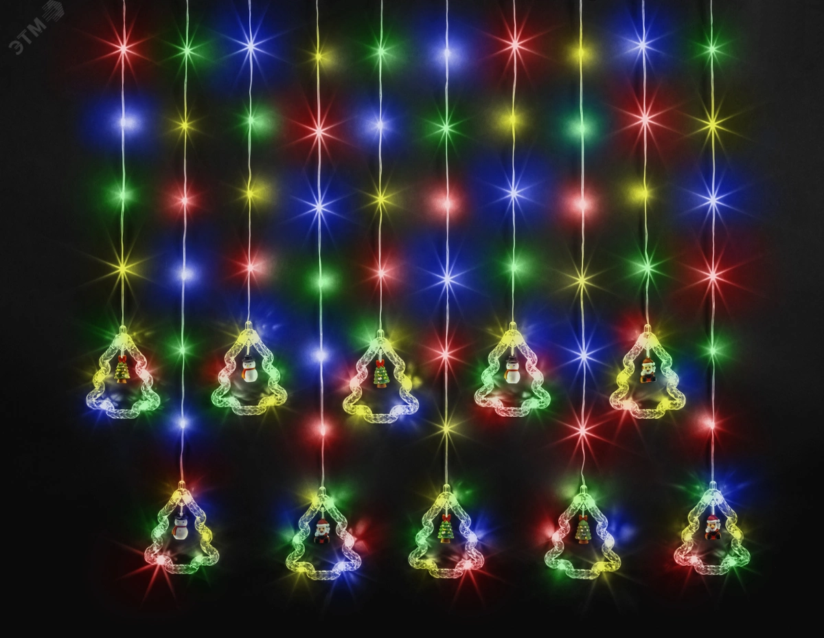 Гирлянда новогодняя светодиодная NGF-D034-03 бахрома елки и фигурки RGBY 3*0.6м IP20