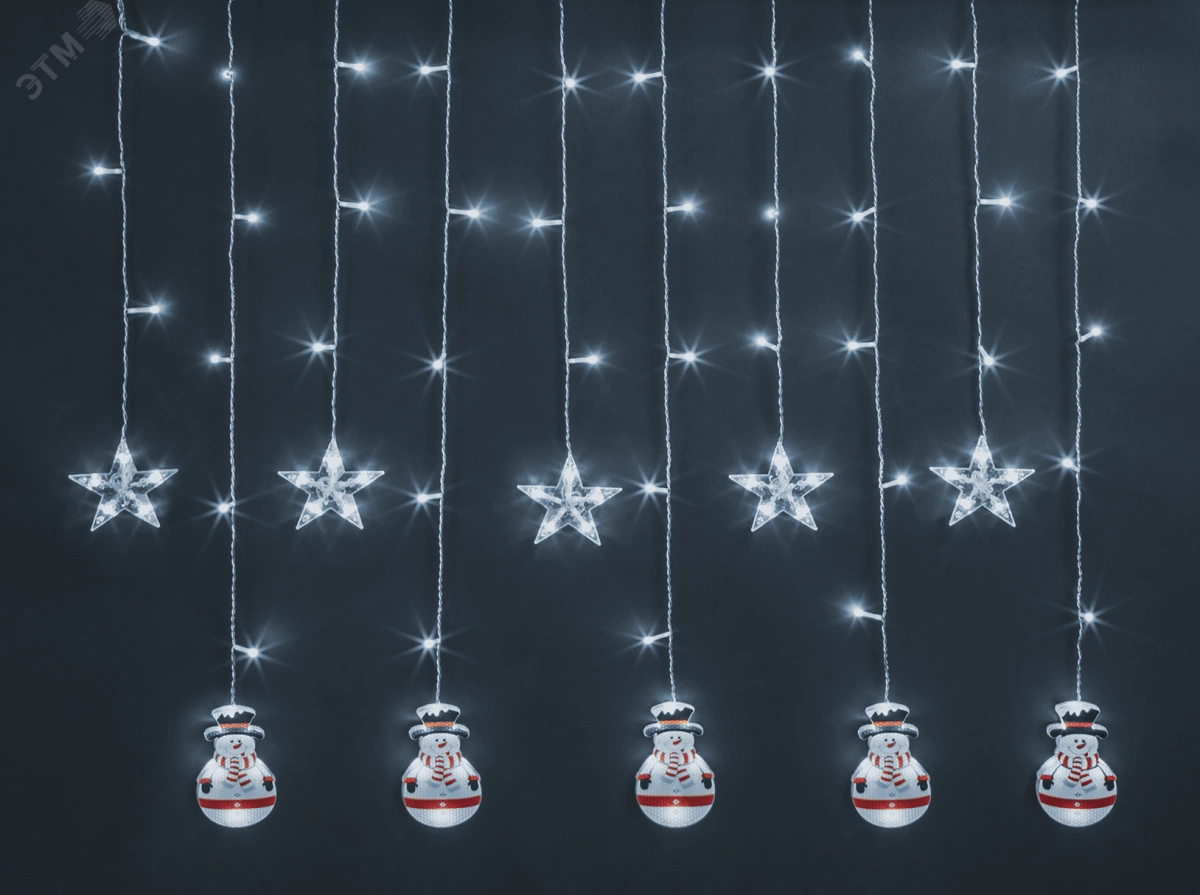 Гирлянда новогодняя светодиодная NGF-D037-02 бахрома звезды и снеговики CW 3*0.6м IP20