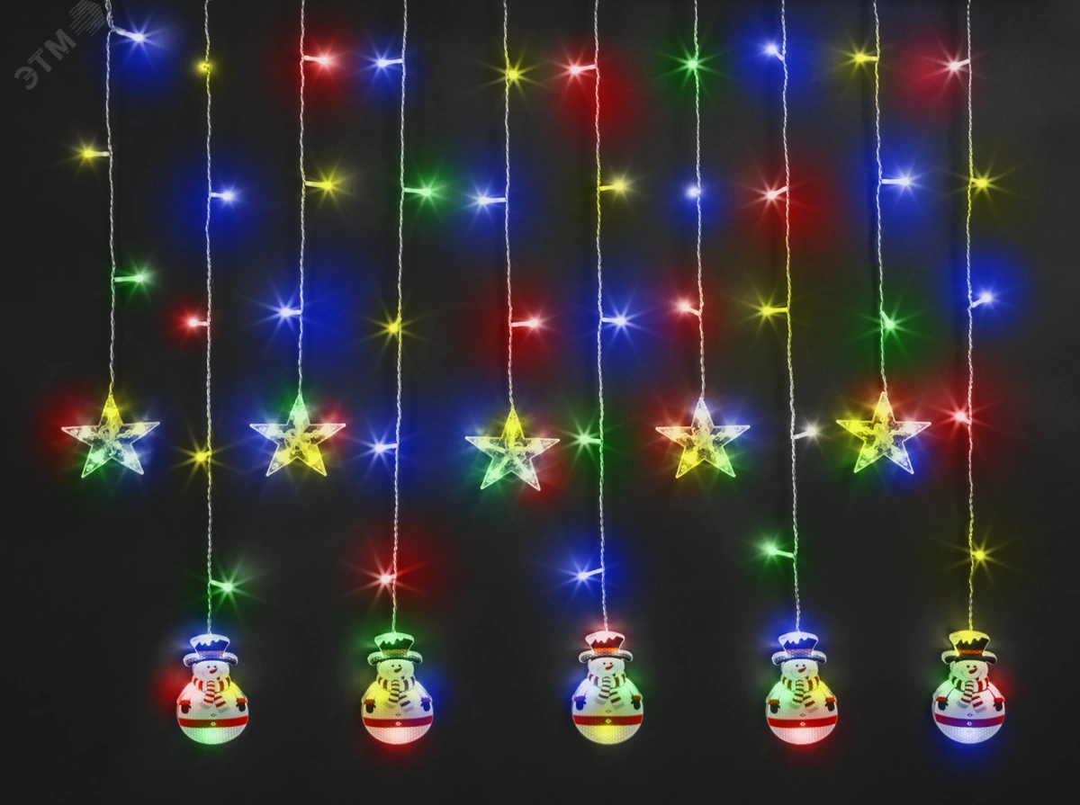 Гирлянда новогодняя светодиодная NGF-D037-03 бахрома звезды и снеговики RGBY 3х0.6м IP20