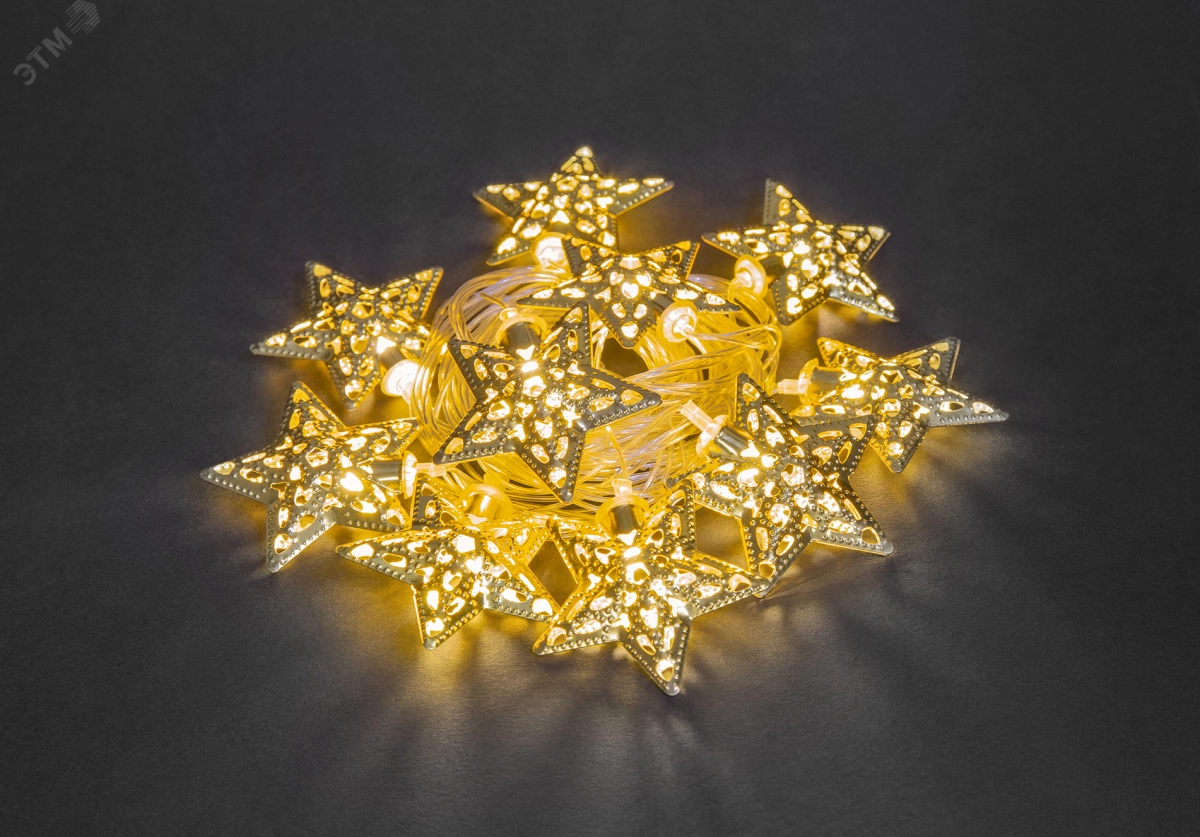 Гирлянда новогодняя светодиодная NGF-D042-02 нить золотые звезды WW 1.6м IP20